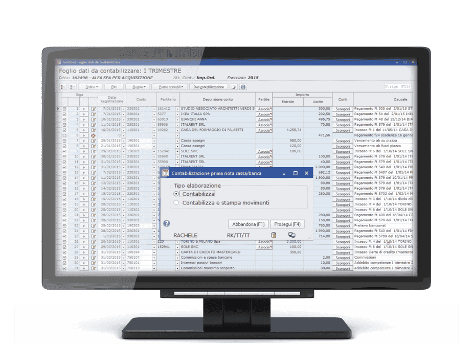 Il sistema di tabelle, fornite e aggiornate da Sistemi (come il piano dei conti, i codici iva, le tabelle ritenute …),  guida l’operatore nell’inserimento dei dati e lo supporta nella gestione automatica degli adempimenti periodici e annuali.